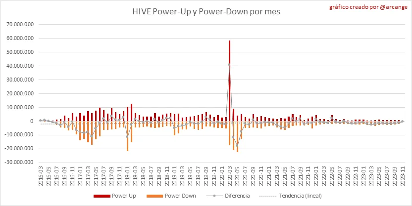 Este gráfico muestra el Powerup y Powerdown mensual y la variación resultante.
