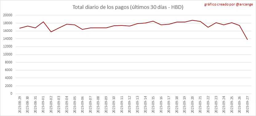 Estos gráficos muestran el total del pago distribuido (publicaciones y comentarios) de cada día.
