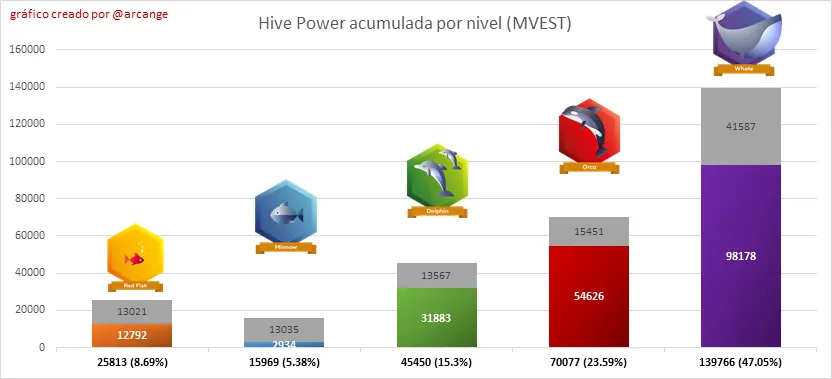 La parte gris de cada columna indica Hive Power no utilizado por cuentas inactivas (ver arriba la definición de inactivo).