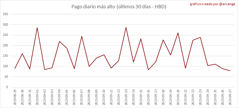 Este gráfico muestra la recompensa más alta pagada por una publicación (o comentario) durante los últimos 30 días.