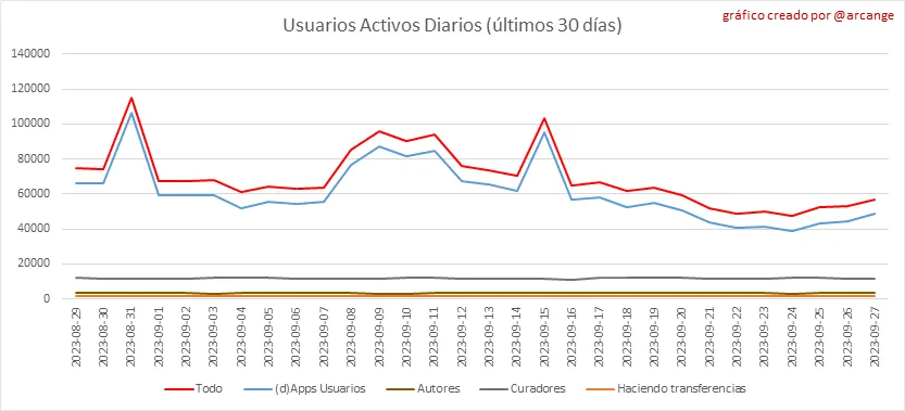 Toda la información presentada en este informe se basa en los datos recopilados de la cadena de bloques hasta las medianoche del 2023-09-27, hora UTC. El objetivo de este informe es brindarle una visión clara de lo que está sucediendo en la Hive blockchain.