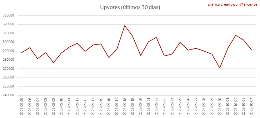 Estos gráficos muestran la evolución de la curación (upvotes) durante toda la vida útil de la blockchain y durante los últimos 30 días.