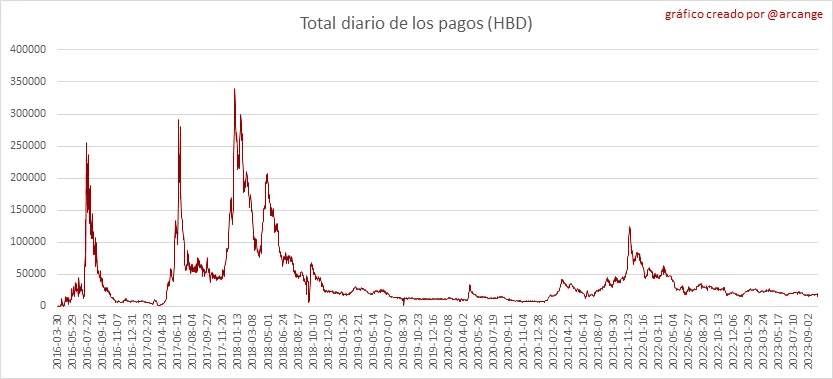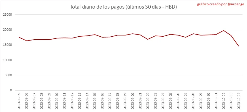 Estos gráficos muestran el total del pago distribuido (publicaciones y comentarios) de cada día.