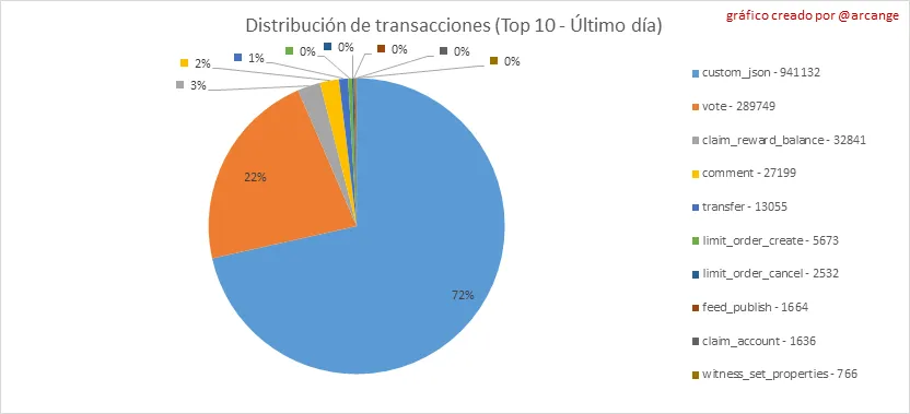 Este gráfico muestra la distribución de los 10 tipos principales de transacciones por número de operaciones realizadas en la blockchain.