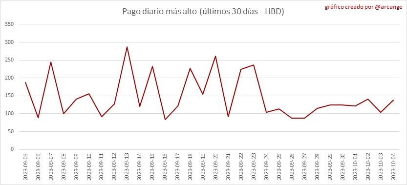 Este gráfico muestra la recompensa más alta pagada por una publicación (o comentario) durante los últimos 30 días.