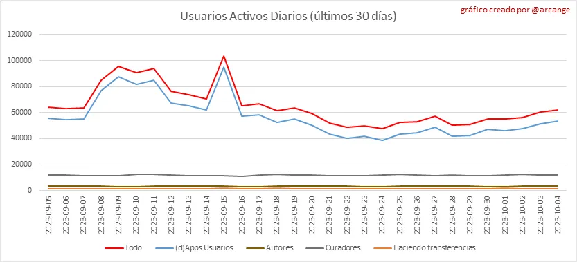 Toda la información presentada en este informe se basa en los datos recopilados de la cadena de bloques hasta las medianoche del 2023-10-04, hora UTC. El objetivo de este informe es brindarle una visión clara de lo que está sucediendo en la Hive blockchain.