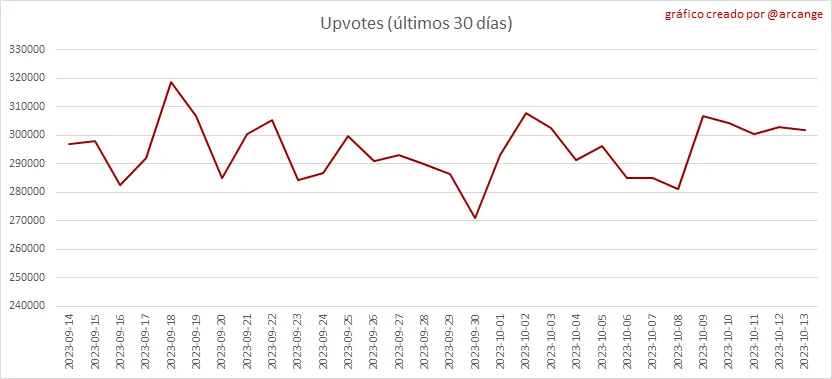 Estos gráficos muestran la evolución de la curación (upvotes) durante toda la vida útil de la blockchain y durante los últimos 30 días.
