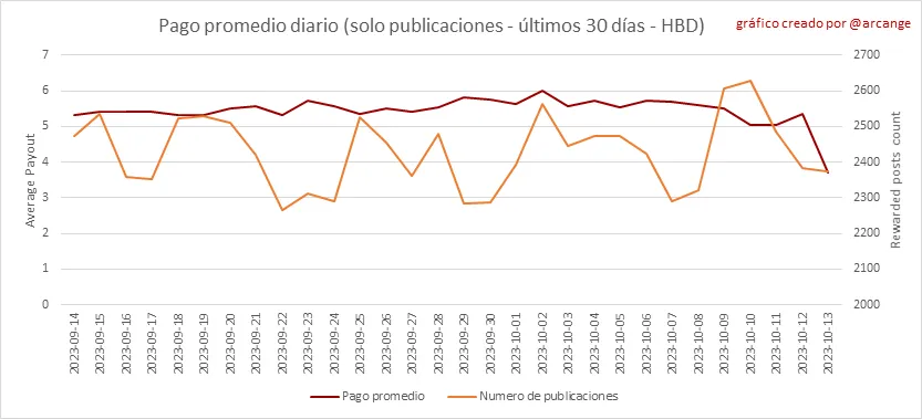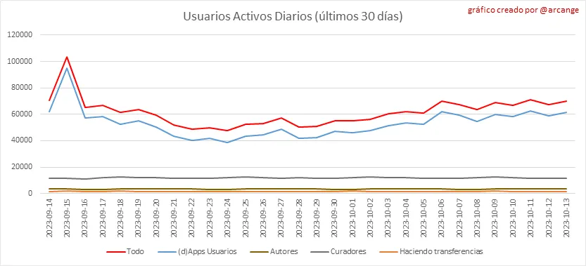 Toda la información presentada en este informe se basa en los datos recopilados de la cadena de bloques hasta las medianoche del 2023-10-13, hora UTC. El objetivo de este informe es brindarle una visión clara de lo que está sucediendo en la Hive blockchain.