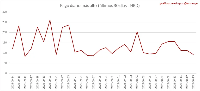 Este gráfico muestra la recompensa más alta pagada por una publicación (o comentario) durante los últimos 30 días.