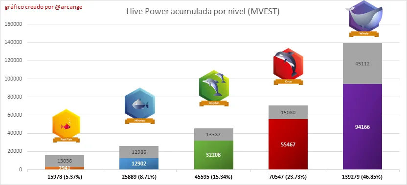 La parte gris de cada columna indica Hive Power no utilizado por cuentas inactivas (ver arriba la definición de inactivo).