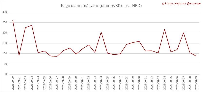 Este gráfico muestra la recompensa más alta pagada por una publicación (o comentario) durante los últimos 30 días.