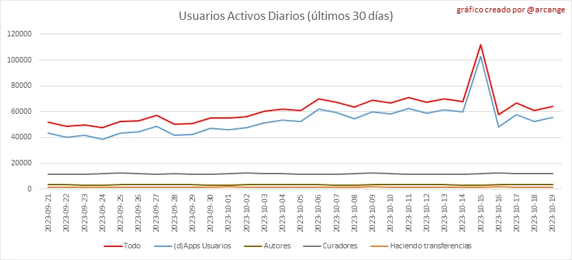 Toda la información presentada en este informe se basa en los datos recopilados de la cadena de bloques hasta las medianoche del 2023-10-20, hora UTC. El objetivo de este informe es brindarle una visión clara de lo que está sucediendo en la Hive blockchain.