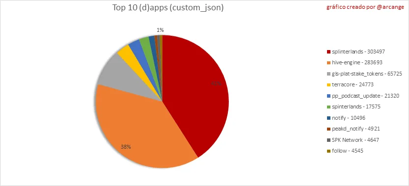 Este gráfico muestra qué aplicaciones generan la mayor actividad (operaciones custom_json) en la blockchain.