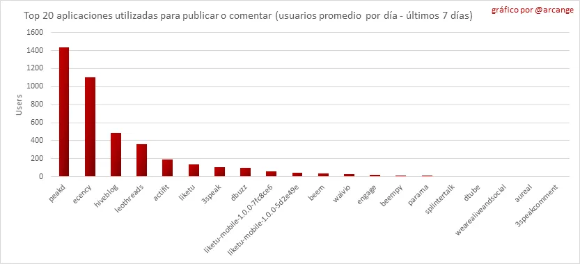 Este gráfico muestra qué aplicaciones se utilizan más para publicar posts y comentarios. Tenga en cuenta que el mismo usuario puede utilizar varias aplicaciones diferentes.