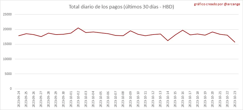 Estos gráficos muestran el total del pago distribuido (publicaciones y comentarios) de cada día.