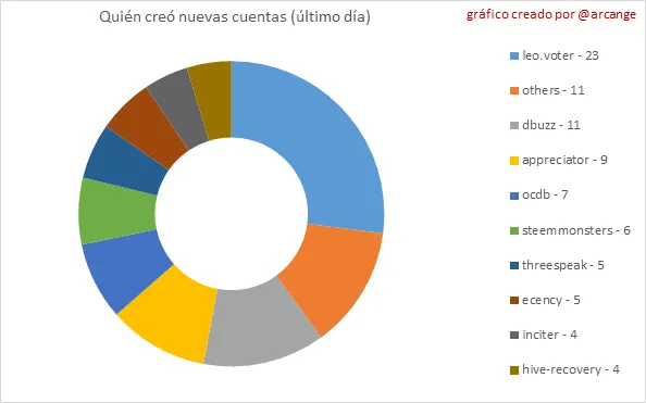 Estos dos gráficos muestran quién creó nuevas cuentas durante el último día y el número total de cuentas registradas. La línea roja muestra cuántas de ellas han estado activas al menos una vez (activa significa publicar un post, comentar o votar). Están incluidas incluso si se vuelven inactivos más tarde.