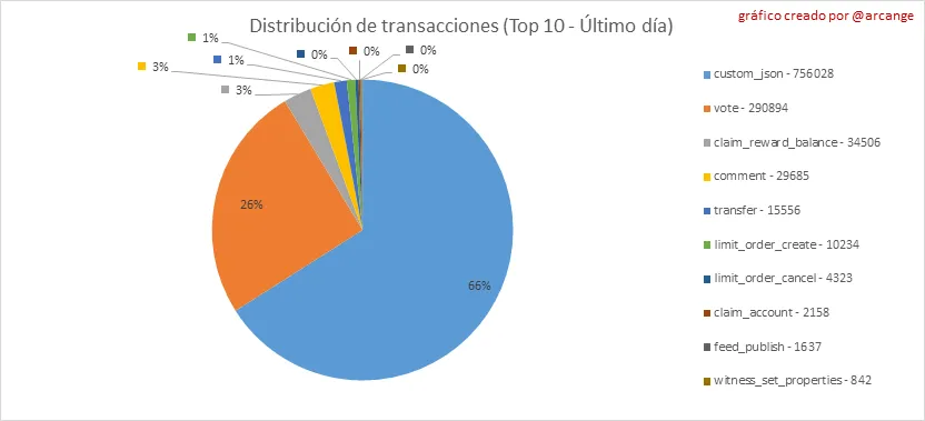 Este gráfico muestra la distribución de los 10 tipos principales de transacciones por número de operaciones realizadas en la blockchain.