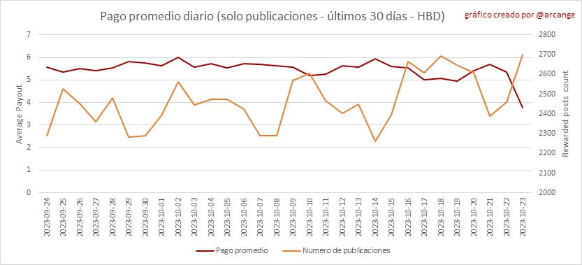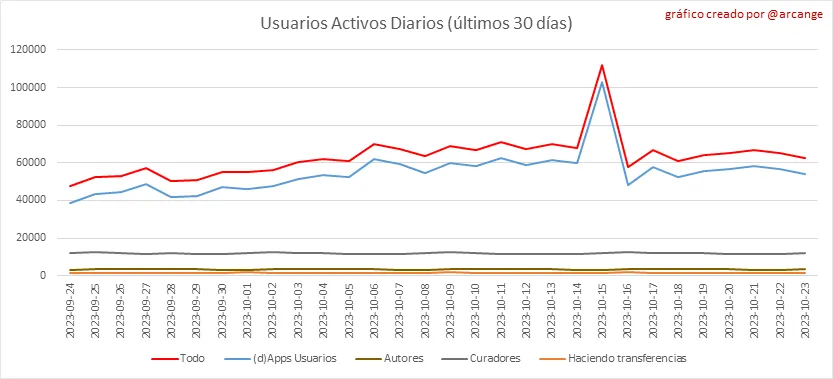 Toda la información presentada en este informe se basa en los datos recopilados de la cadena de bloques hasta las medianoche del 2023-10-23, hora UTC. El objetivo de este informe es brindarle una visión clara de lo que está sucediendo en la Hive blockchain.