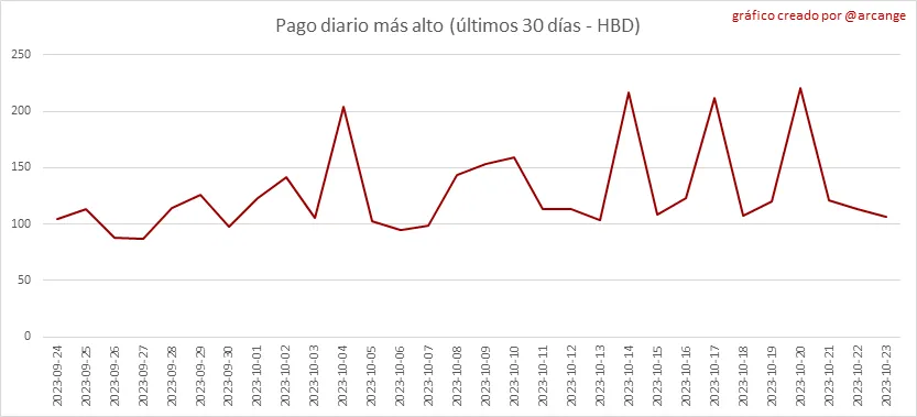 Este gráfico muestra la recompensa más alta pagada por una publicación (o comentario) durante los últimos 30 días.
