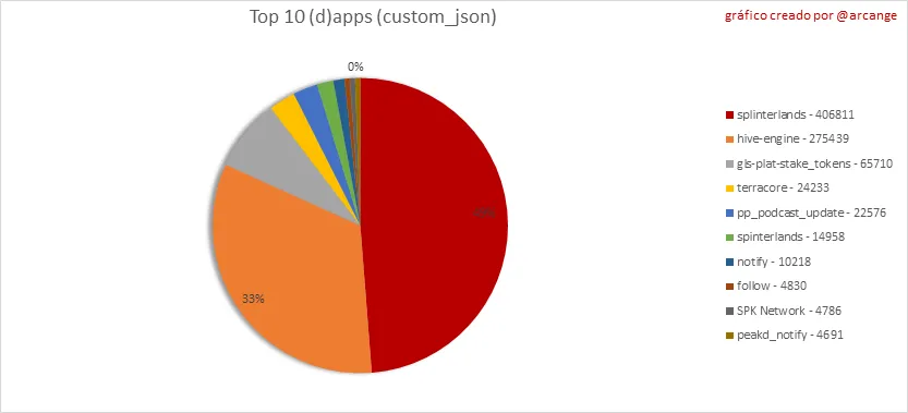 Este gráfico muestra qué aplicaciones generan la mayor actividad (operaciones custom_json) en la blockchain.