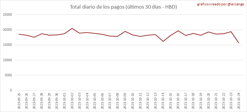 Estos gráficos muestran el total del pago distribuido (publicaciones y comentarios) de cada día.