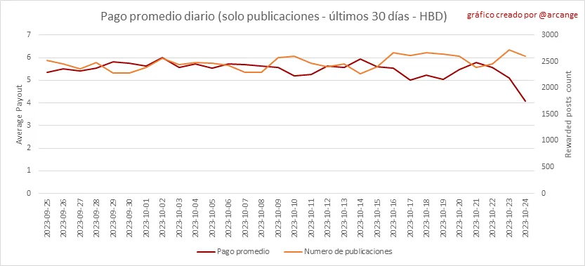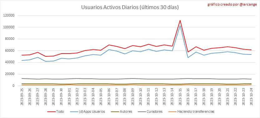 Toda la información presentada en este informe se basa en los datos recopilados de la cadena de bloques hasta las medianoche del 2023-10-24, hora UTC. El objetivo de este informe es brindarle una visión clara de lo que está sucediendo en la Hive blockchain.