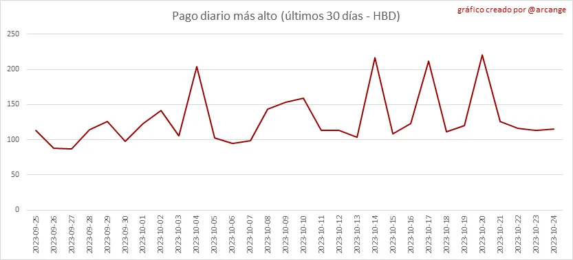 Este gráfico muestra la recompensa más alta pagada por una publicación (o comentario) durante los últimos 30 días.