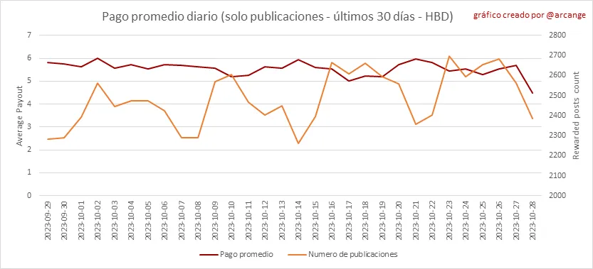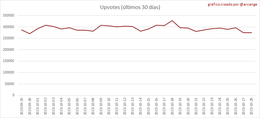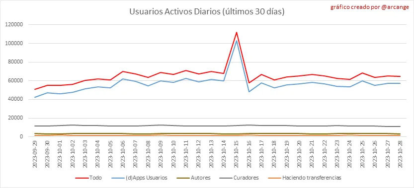 Toda la información presentada en este informe se basa en los datos recopilados de la cadena de bloques hasta las medianoche del 2023-10-28, hora UTC. El objetivo de este informe es brindarle una visión clara de lo que está sucediendo en la Hive blockchain.