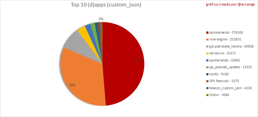 Este gráfico muestra qué aplicaciones generan la mayor actividad (operaciones custom_json) en la blockchain.