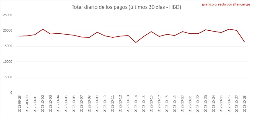 Estos gráficos muestran el total del pago distribuido (publicaciones y comentarios) de cada día.