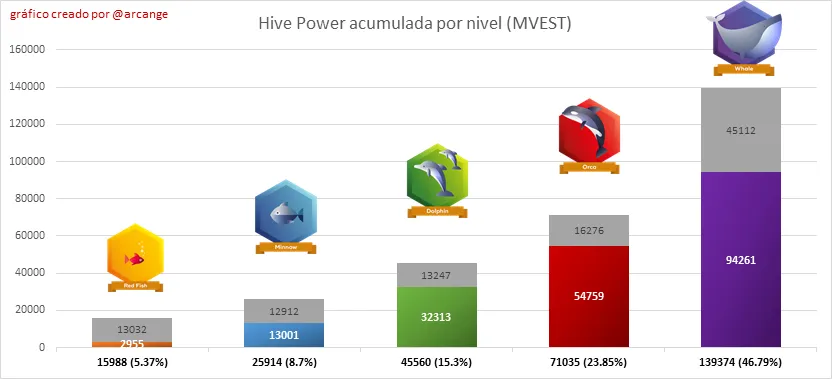 La parte gris de cada columna indica Hive Power no utilizado por cuentas inactivas (ver arriba la definición de inactivo).