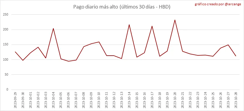 Este gráfico muestra la recompensa más alta pagada por una publicación (o comentario) durante los últimos 30 días.