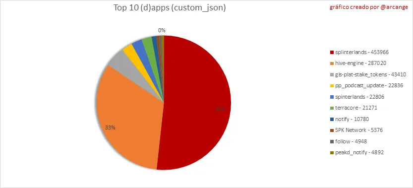 Este gráfico muestra qué aplicaciones generan la mayor actividad (operaciones custom_json) en la blockchain.