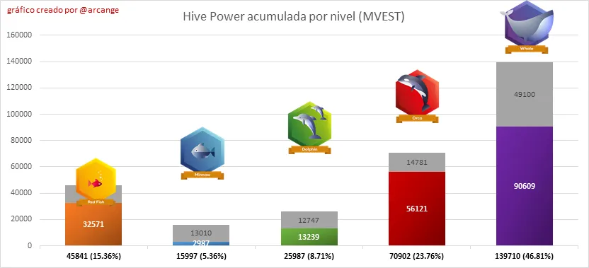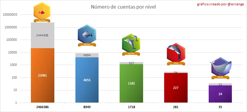 La parte gris de cada columna indica Hive Power no utilizado por cuentas inactivas (ver arriba la definición de inactivo).