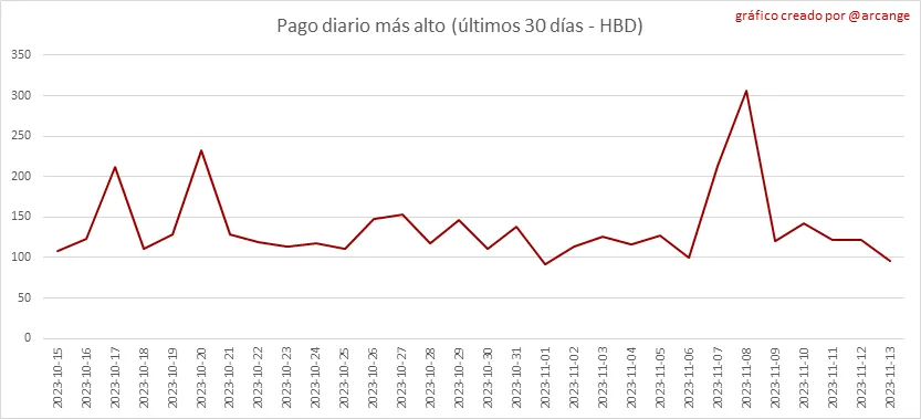 Este gráfico muestra la recompensa más alta pagada por una publicación (o comentario) durante los últimos 30 días.