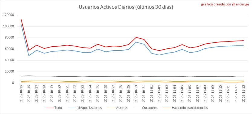 Toda la información presentada en este informe se basa en los datos recopilados de la cadena de bloques hasta las medianoche del 2023-11-13, hora UTC. El objetivo de este informe es brindarle una visión clara de lo que está sucediendo en la Hive blockchain.