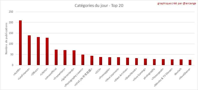 Ce graphique montre les catégories les plus utilisées pour les publications depuis la création de la blockchain et ce dernier jour.