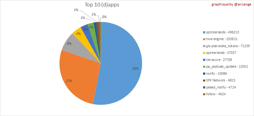 Ce graphique montre quelles sont les applications qui génèrent le plus d'activité (operations custom_json) sur la blockchain.