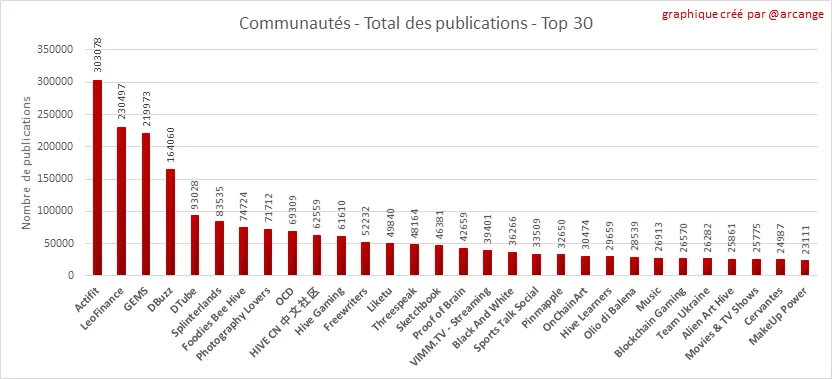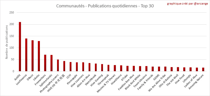 Ces graphiques montrent les communautés les plus actives en termes de publications depuis la leur création et pour le jour passé.