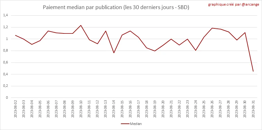 Ces graphiques montrent les paiements moyens et médians par publication au cours des 30 derniers jours.