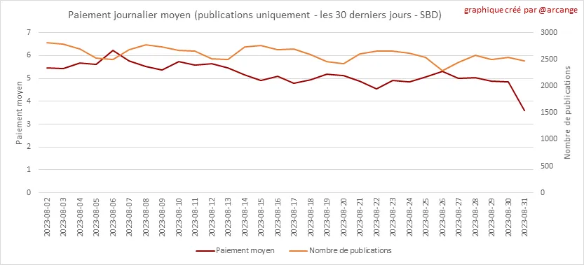 Ces graphiques montrent le total des paiements distribués (publications et commentaires) pour chaque jour.
