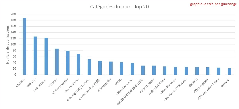 Ce graphique montre les catégories les plus utilisées pour les publications depuis la création de la blockchain et ce dernier jour.