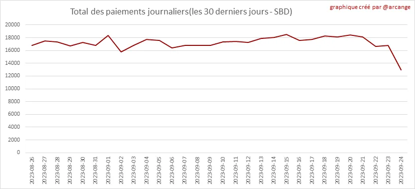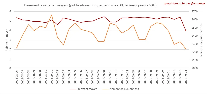 Ces graphiques montrent le total des paiements distribués (publications et commentaires) pour chaque jour.