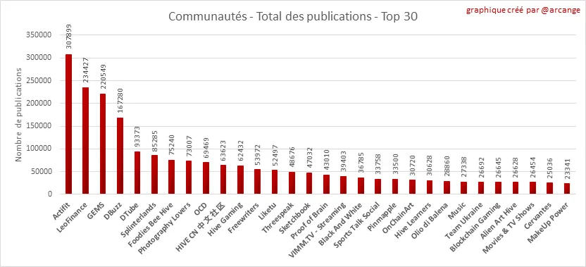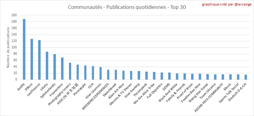 Ces graphiques montrent les communautés les plus actives en termes de publications depuis la leur création et pour le jour passé.