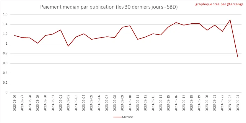 Ces graphiques montrent les paiements moyens et médians par publication au cours des 30 derniers jours.