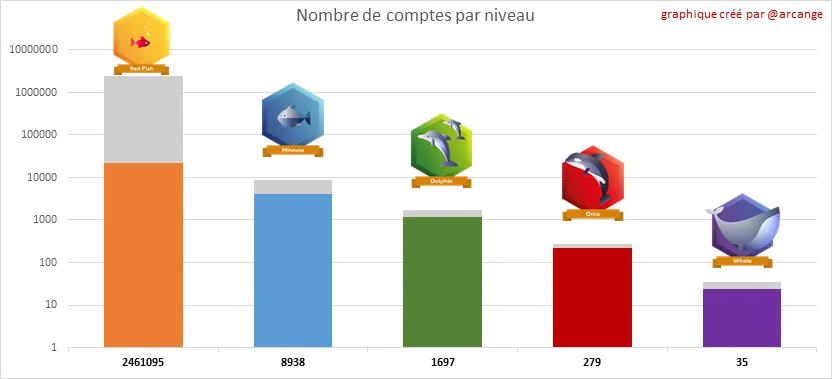 La partie grise de chaque colonne indique le Hive Power inutilisé par les comptes inactifs (voir la définition d'inactif ci-dessus).