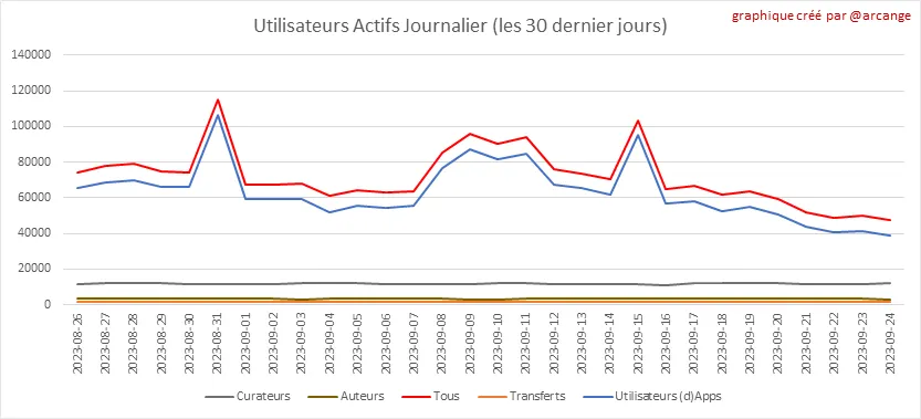 Toutes les informations présentées dans ce rapport sont basées sur les données collectées dans la blockchain jusqu'au 24-09-2023 à minuit, heure UTC. L'objectif de ce rapport est de vous fournir une vision claire de ce qui se passe quotidiennement dans la blockchain Hive.