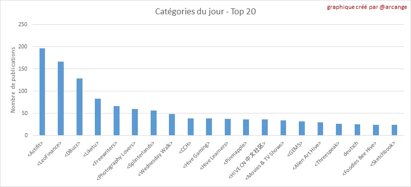 Ce graphique montre les catégories les plus utilisées pour les publications depuis la création de la blockchain et ce dernier jour.