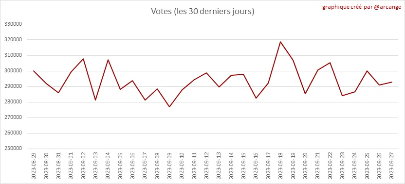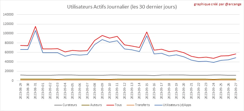 Toutes les informations présentées dans ce rapport sont basées sur les données collectées dans la blockchain jusqu'au 27-09-2023 à minuit, heure UTC. L'objectif de ce rapport est de vous fournir une vision claire de ce qui se passe quotidiennement dans la blockchain Hive.