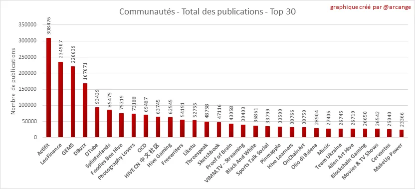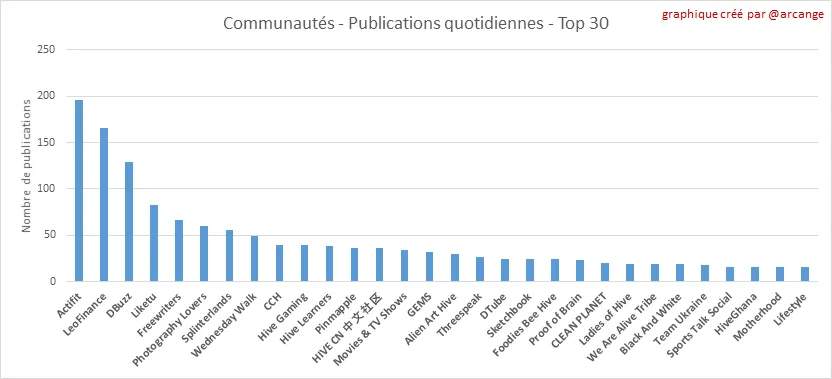 Ces graphiques montrent les communautés les plus actives en termes de publications depuis la leur création et pour le jour passé.